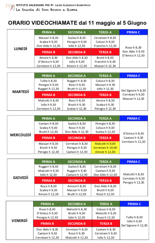 - lo schema orario delle video chiamate di classe per media e licei