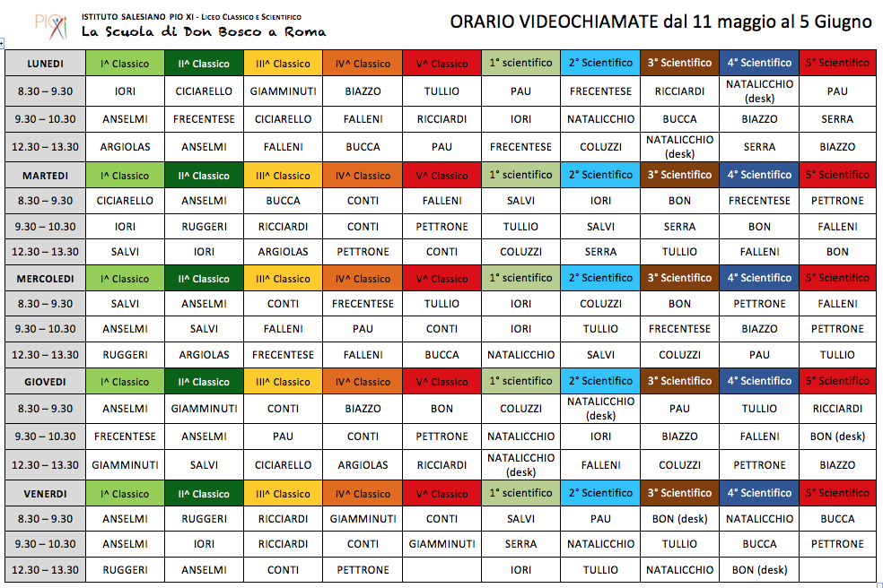 ORARIO VIDEO CHIAMATE MEDIA (11 MAGGIO-8 GIUGNO) PDD - 1 B (10) PDD - 3° SCIENTIFICO (10)